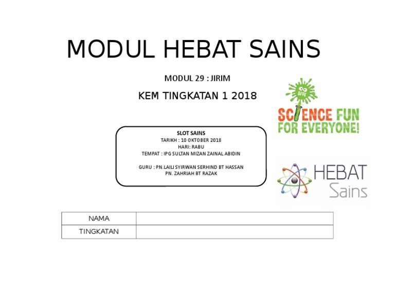 Pemetaan Modul Hebat Sains Dalam. Penceramah ialah Puan Paine Anyie dan dihadiri oleh 13 orang peserta termasuklah Guru Kanan Sains dan. Modul HEBAT Sains BM Modul HEBAT Sains English Modul Teknologi Hijau Sekolah Menengah.